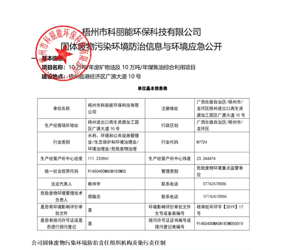 梧州市科丽能环保U技有限公司成立?018q??0日,位于梧州市龙圩区梧州q口再生资源加工园区内,业务늛危险废物的综合利用与环保技术服务支持。目前已具备废矿物a(b)QHW08Q、煤焦a(b)QHW11)两大cd险废物经营资质,危险废物处置能力辑ֈ20万吨/q_(d)其中废矿物a(b)10万吨/q、煤焦a(b)10万吨/q?br>